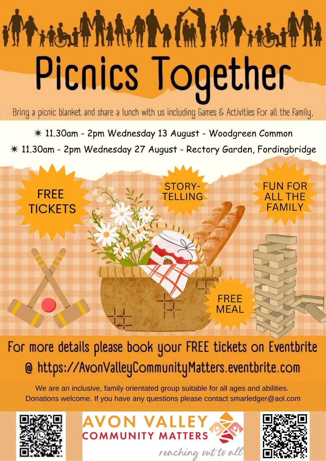 Following on from the previous years’ success, this Summer 2025 we offered our FREE Picnics Together programme for families of all ages and abilities - all FREE as part of Avon Valley Community Matters outreach work to support families and their carers in Fordingbridge and its surrounding villages. So far, in the past 3 years we entertained and fed more than 500 people!