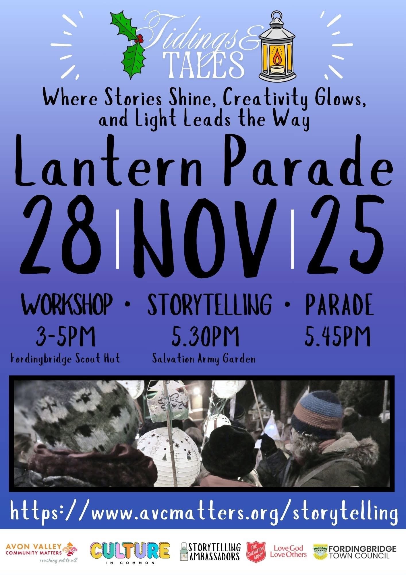This October half term we are organising another Celebration of Light on Wednesday 29 at St Mary’s Church (& Church Hall) in Fordingbridge - come and make lanterns as well as new friends. Following on from this we have planned another FREE Lantern Workshop from 3-5pm on 28 November at the Fordingbridge Scout Hut, followed by Storytelling at 5.30pm in the Salvation Army Garden, for the Lantern Procession on 28 November at the Fordingbridge Christmas Lights evening - an amazing spectacle - for the third year in a row.